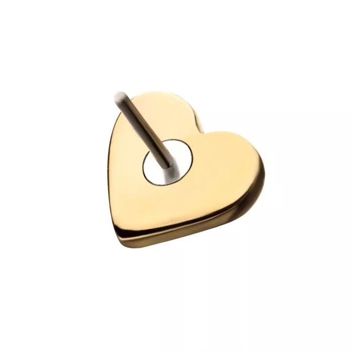 Hearts are always in style, and so is this 14k threadless heart top. It makes a perfect piece for any arrangement, as it is small enough to wear just about anywhere, but large enough to be noticed. Compatible with any threadless Invictus bar or base in any gauge. To secure inside bar or base, add a slight bend to the pin by simply inserting the pin halfway and pushing the top to one side.