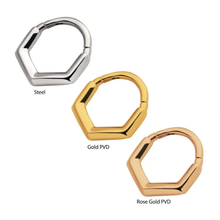 16g 5/16" Surgical Steel with Basic V-Shape Front Facing Hinged Segment Clicker. Available in Steel, Gold and Rose Gold Plated.
